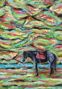 Most of my art is influenced by my travels, my love for the outdoors and storytelling. I aim to incorporate these bits of magic into every painting I do. Introducing surreal colours and abstract aspects to my work is just my way of making the world a little prettier.